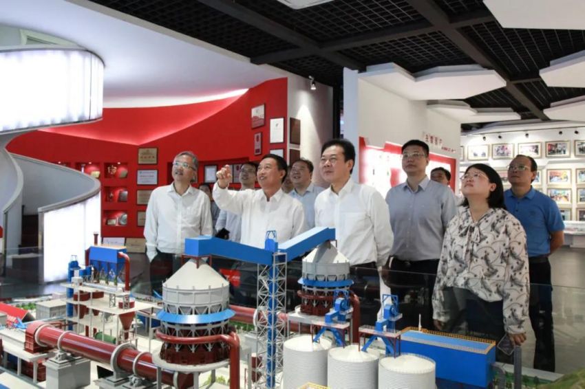 隨后,潘建華副市長一行參觀了鵬飛展館。展館圍繞市場需求開展建材、環保、冶金、化工機械成套設備的研發設計、新技術的運用與產品技術改進工作。參觀途中,潘建華副市長一行了解了鵬飛集團的發展歷程、回轉窯焙燒生產線和水泥生產線工藝流程。