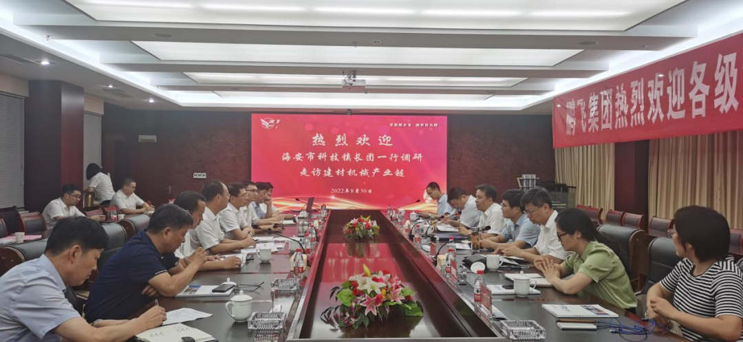 8月30日下午,市第15批科技鎮長團部分成員在團長、海安市人民政府副市長馬小飛的帶領下走訪調研建材機械產業鏈,市建材機械產業鏈黨委書記、市人社局副局長鐘曉衛,大公鎮黨委書記金山存、副鎮長曹陽等相關領導參加活動,市建材機械業協會(商會)秘書長王海軍、副秘書長賁道林、吳志權陪同調研。