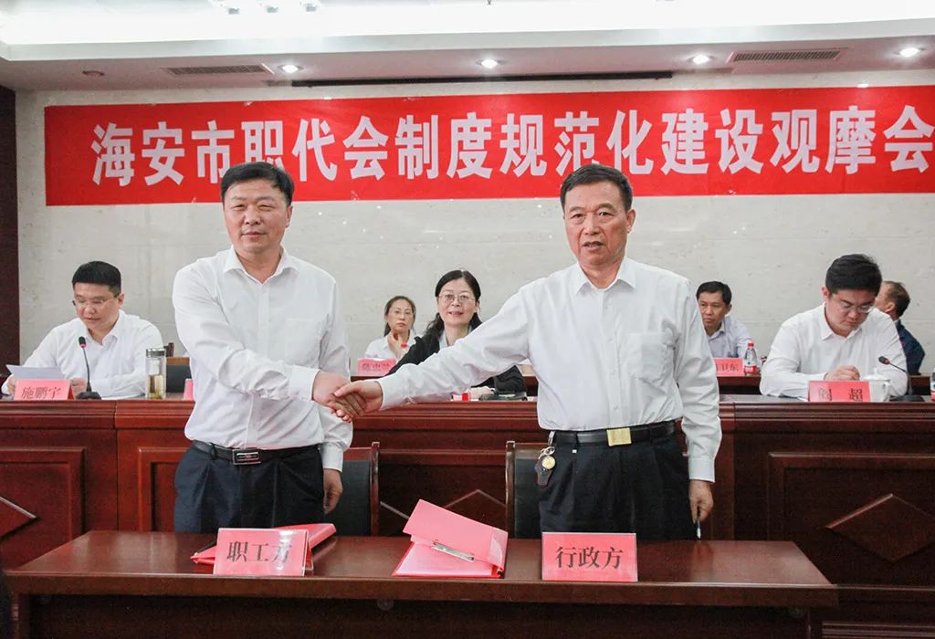 會上,省級廠務公開民主管理示范單位、先進單位與基層工會開展結對共建,從職代會制度、廠務公開制度、職工董事監事制度、協商民主制度等方面進一步健全以職工代表大會為基本形式的企事業單位民主管理制度,充分發揮示范引領作用,有效帶動基層單位建立健全以職代會為基本形式的民主管理制度,維護職工合法權益。