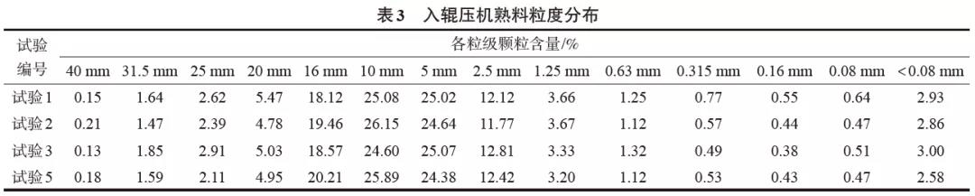 4 試驗數據的比較和說明4.1 試驗過程中輥壓機物料顆粒組成變化